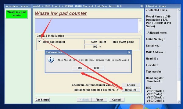 1、首先检查打印机的墨盒,爱普生(A3)的墨盒是自带的,如果用起来没有剩余的话会自动断电,导致墨水浪费。